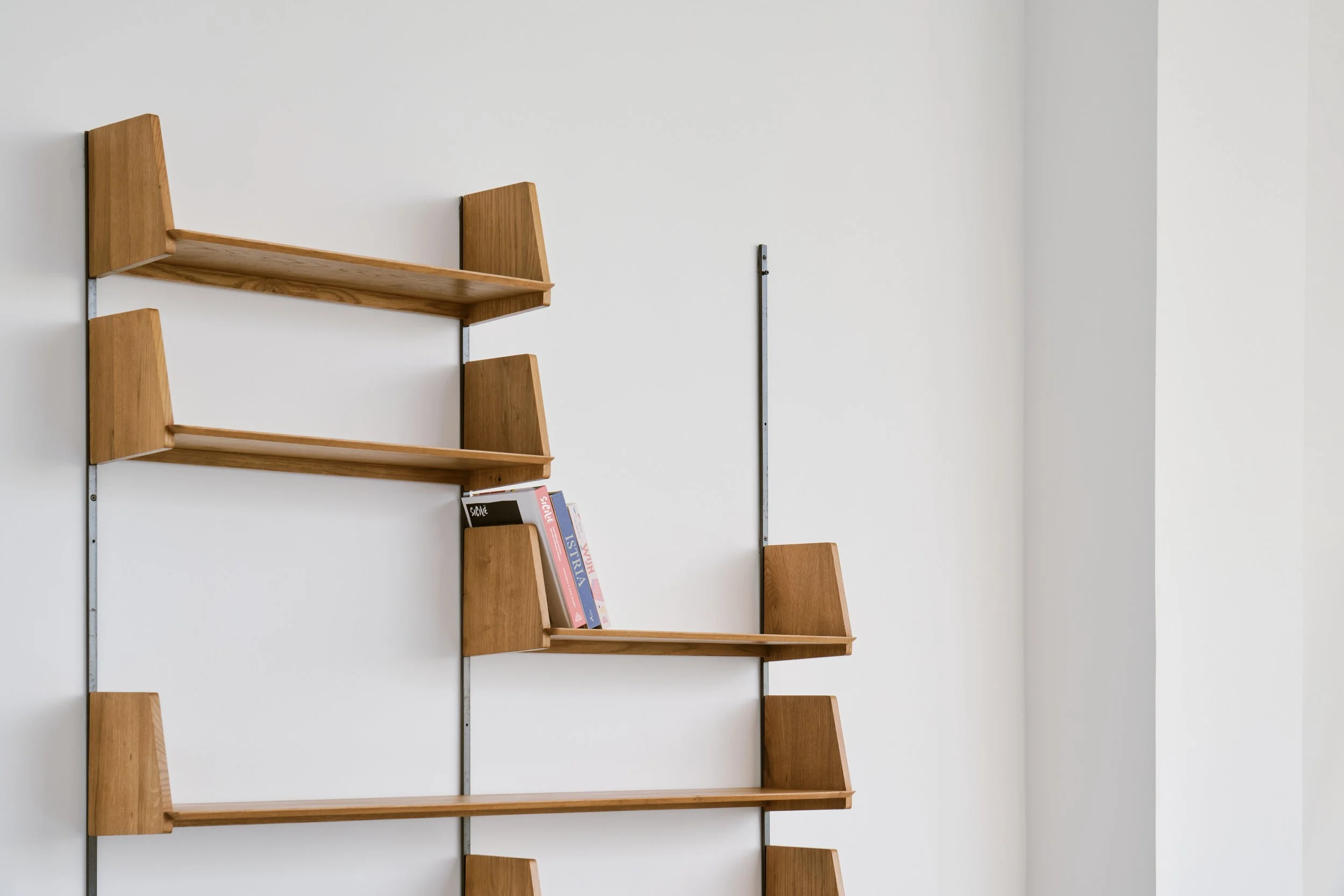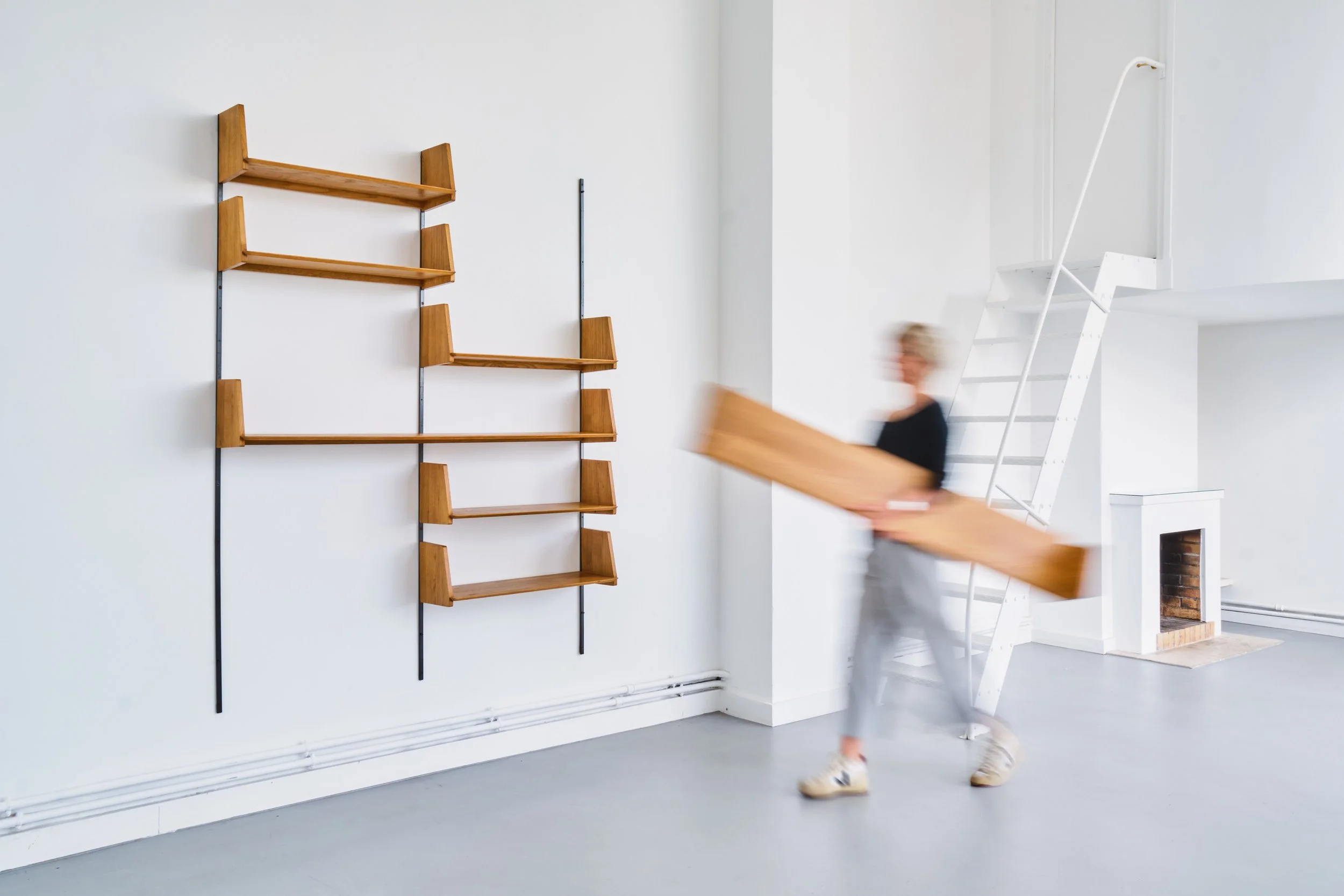 Photography for Hyacinthe’s (Alexis Le Grand) re-edition of Marcel Gascoin’s Wall Unit • E, a modular shelving system first presented in 1937. The series highlights the balance between form and function at the core of Gascoin’s design, capturing the sense of lightness, proportion, and craftsmanship that define the piece. Each image focuses on the material qualities and modular character of the shelves, while echoing the timeless relevance of this post-war design philosophy.